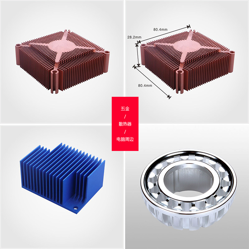 散熱片一般都是通過擠壓模具成型,但鋁擠型材都是外部初步輪廓,根據(jù)要散熱的電子部件的尺寸,散熱器呈現(xiàn)出非常多的復(fù)雜外型。這樣就需要利用CNC數(shù)控加工中心進(jìn)行各種復(fù)雜加工,一般的加工內(nèi)容有飛面,銑槽,鑼圓,鉆孔,攻絲。